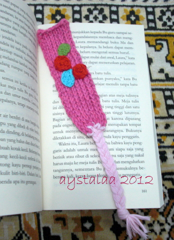 First bookmark called the Pink. Using Tunisian Knit Stitch technique for the top and i attached some yarn below to make a braid