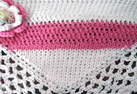 First row i use Tunisian Knit Stitch , in the middle i change the color and the stitch into Tunisian Purl Stitch..And in the row 25th i use Tunisian Knit Stitch again..The difference of the stitches is lovely..I like it. Plus, i give her a bonus.This is it..Mini Dress Bookmark..Hope she’ll like it too